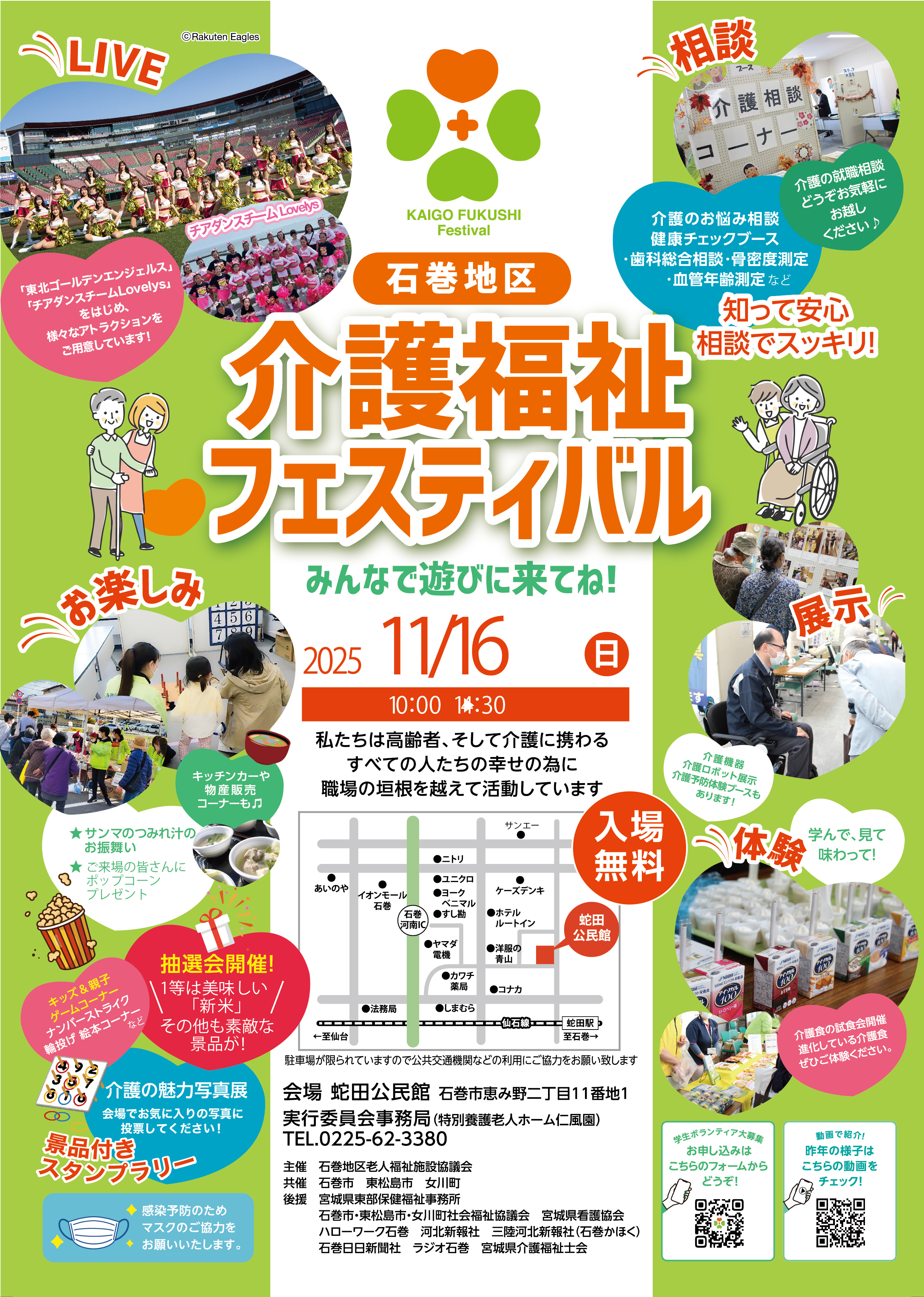 今年も石巻地区介護福祉フェスティバルが開催されます☆ぜひ、お越しください♬